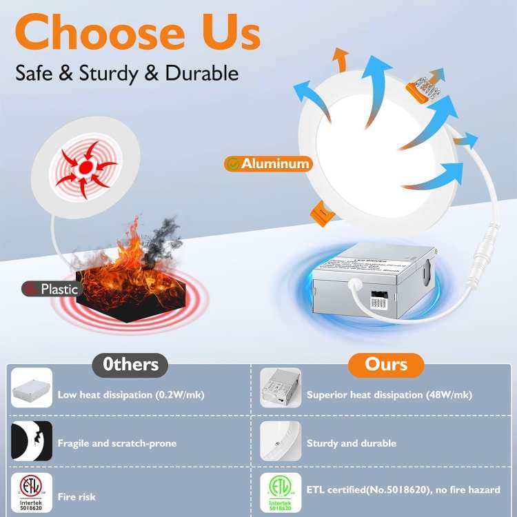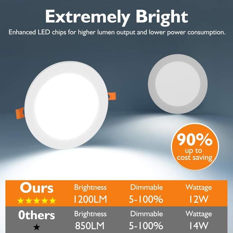 Bright & Flicker-Free Performance: Equipped with a built-in LED chip, this 6-inch wafer light provides high brightness with low energy consumption. It uses 12 watts to produce 1200 lumens (150W equivalent), helping reduce electricity use. The low-profile recessed lighting delivers stable light without flickering, buzzing, or harsh glare.